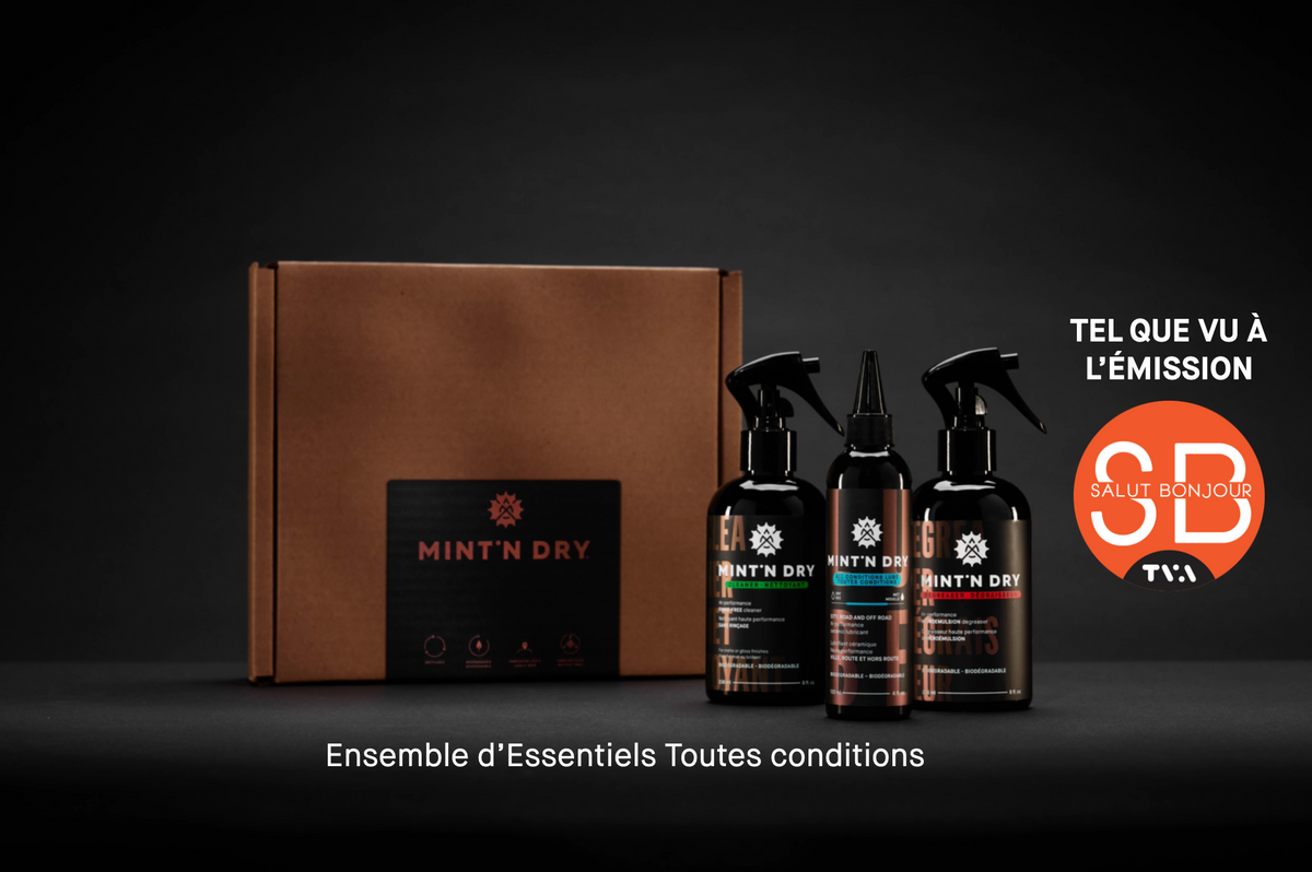 Chez MINT'N DRY, nous rendons l'entretien du vélo simple, efficace et respectueux de l'environnement. Du nettoyage en profondeur à la lubrification haute performance, nos formules innovantes sans rinçage permettent à votre vélo de fonctionner en douceur et de rester comme neuf—sans le tracas du rinçage.